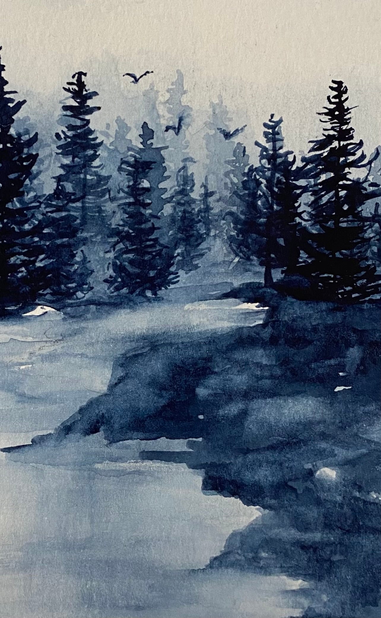 View Similar ProductsExperience the tranquil beauty of Frostbound Silence. This 6x6 monochromatic watercolor is mounted on a cradle board, ready to be hung. With its wired backing, installation is a breeze. Transform your space and embrace the peacefulness with this stunning piece.