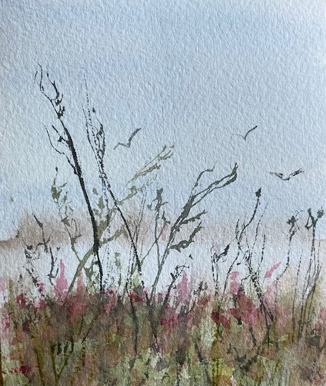 View Similar ProductsThe soft whisper of beach grasses gracefully swaying in the wind. Delicate flowers bloom in the foreground of this small watercolor piece, measuring 4 x 6 inches. Let this exclusive piece bring a touch of refinement and natural beauty to any space.