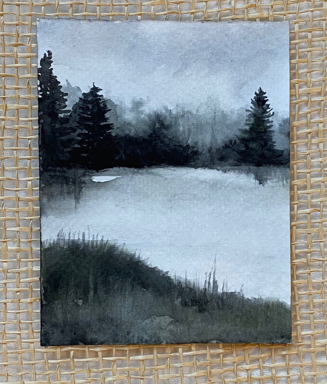 View Similar ProductsElevate your space with "Seeing", a stunning monoaromatic watercolor of a misty forest and lake. Measuring at 4x6, this small but powerful piece adds a touch of elegance and nature to any room. Don't underestimate its impact.