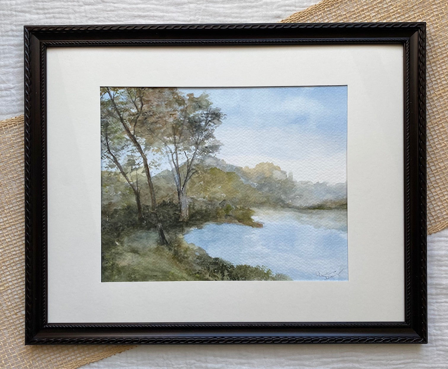 Original watercolor painting on high quality watercolor paper, Due to nature of the paper it is approximately 8 x 10. Painting comes framed 15 x 12